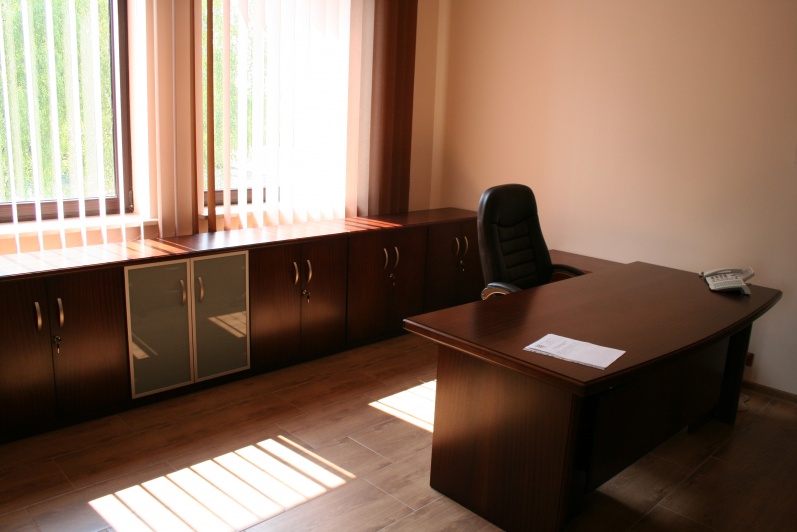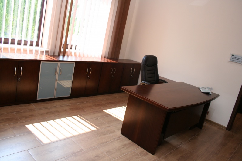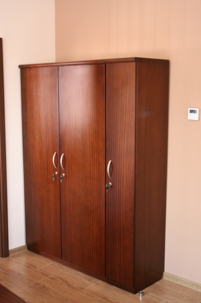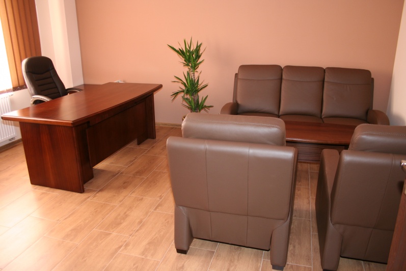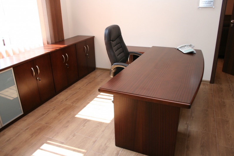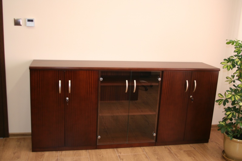 Eleganckie meble gabinetowe wykonane w okleinie naturalnej w wybarwieniu Mahoń Pasiak wybarwienie brąz. System Kanclerz.
