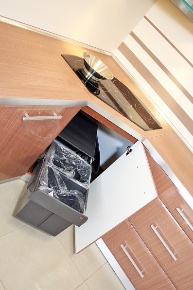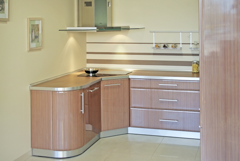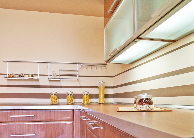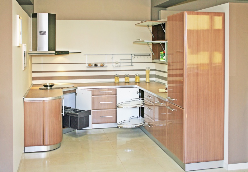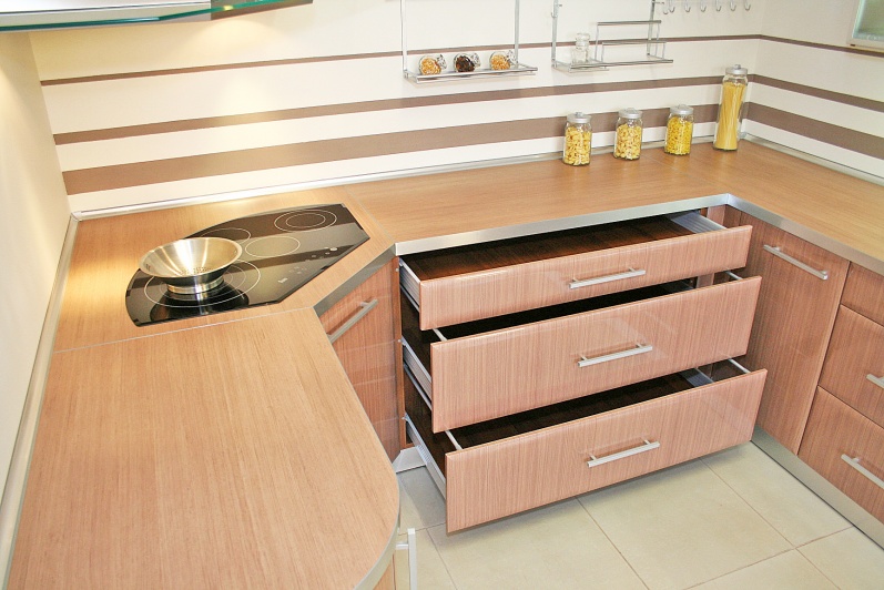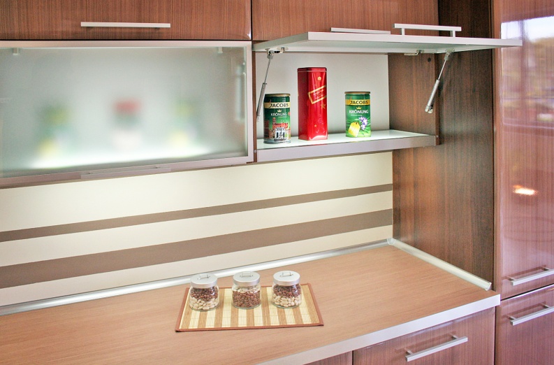 Kuchnia z frontami foliowanymi. Elementy pokryte lakierem bezbarwnym.