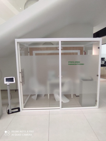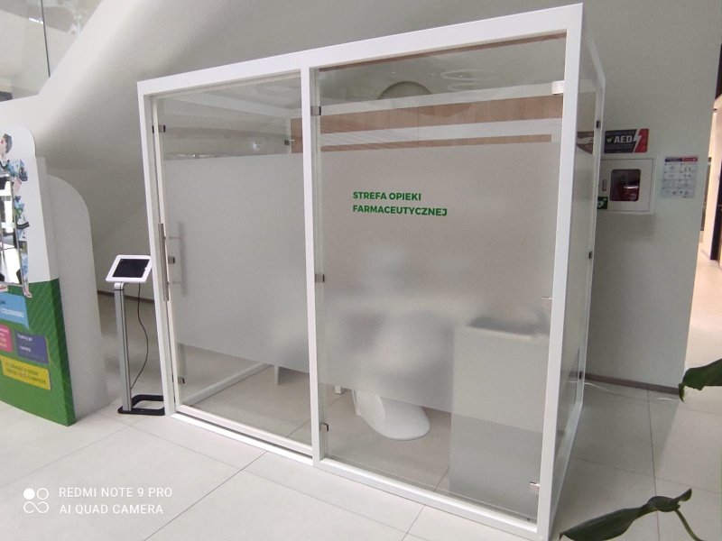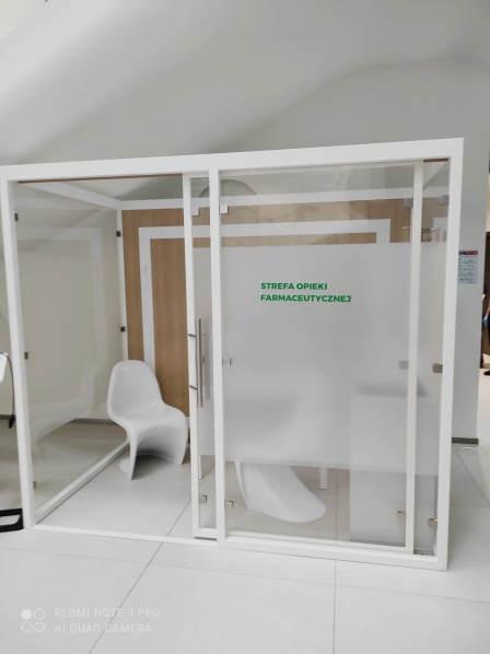 Box Opieki Farmaceutycznej dla Aptek Świat Zdrowi. Box jest umieszczony w formie ekspozycji w firmie Neuca w Toruniu.