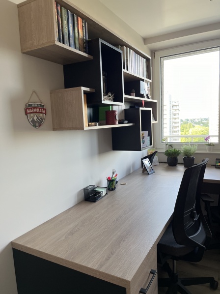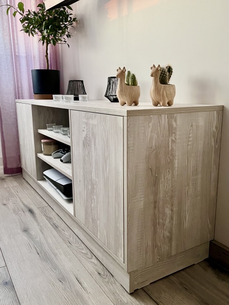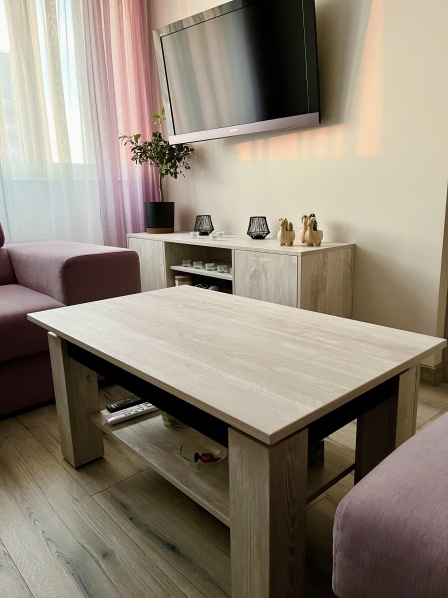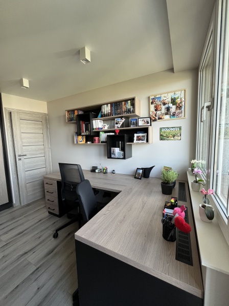 Kompleksowe umeblowanie mieszkania w pasującej do siebie kolorystyce / dekorach.