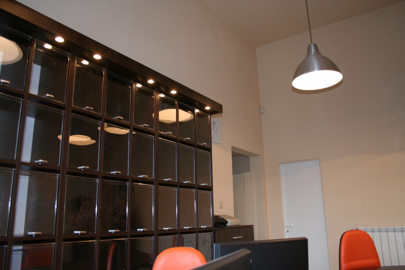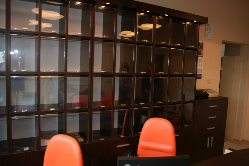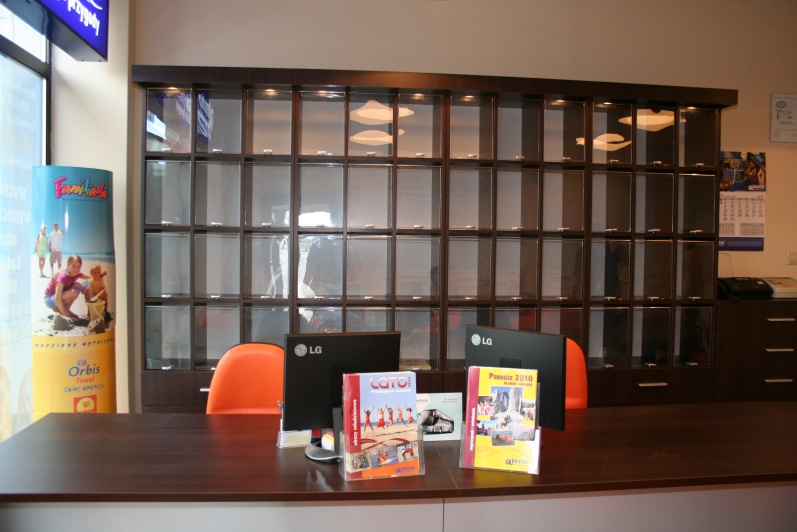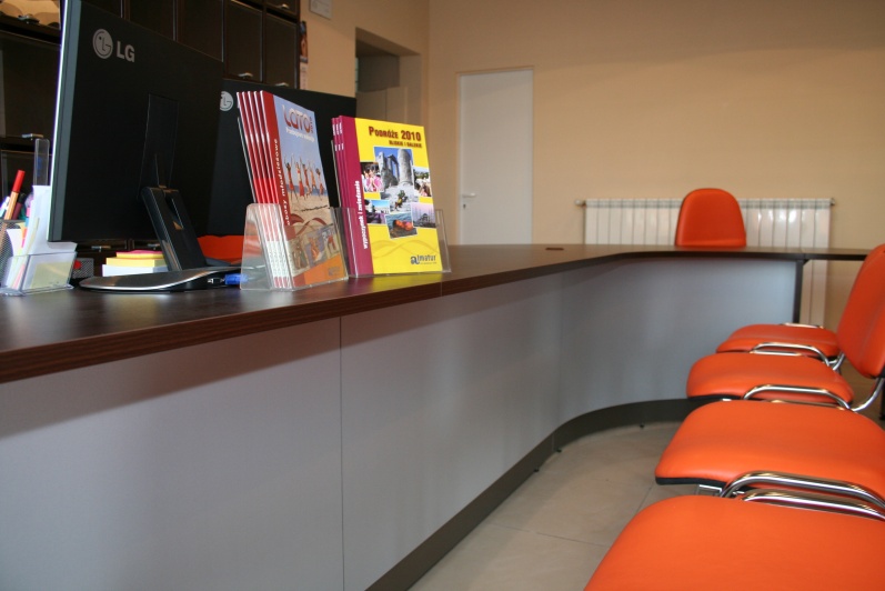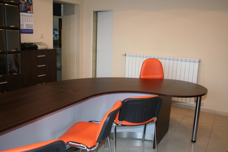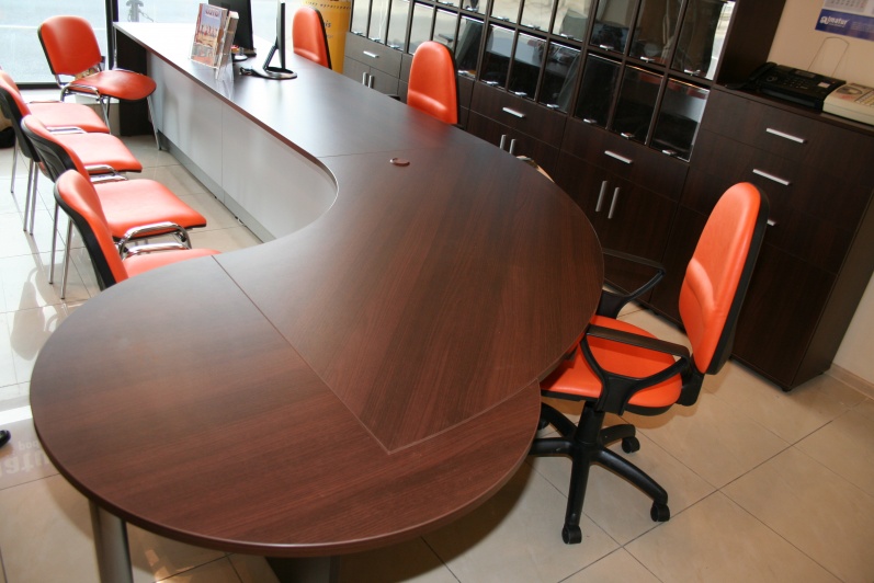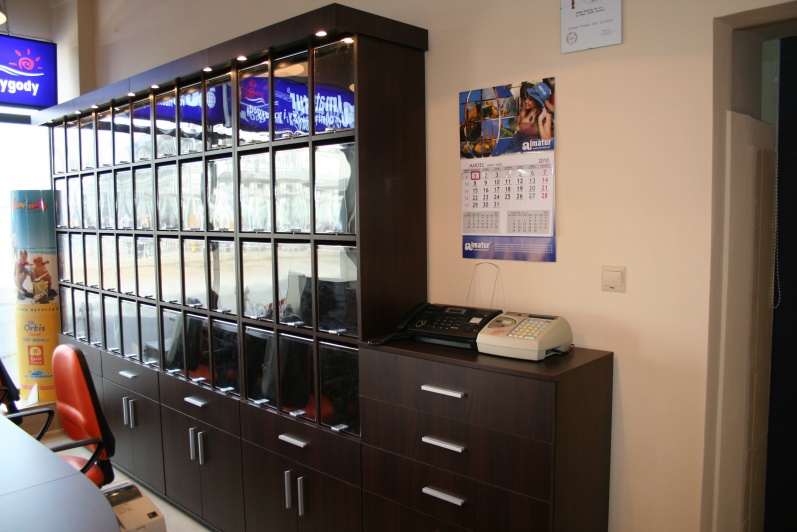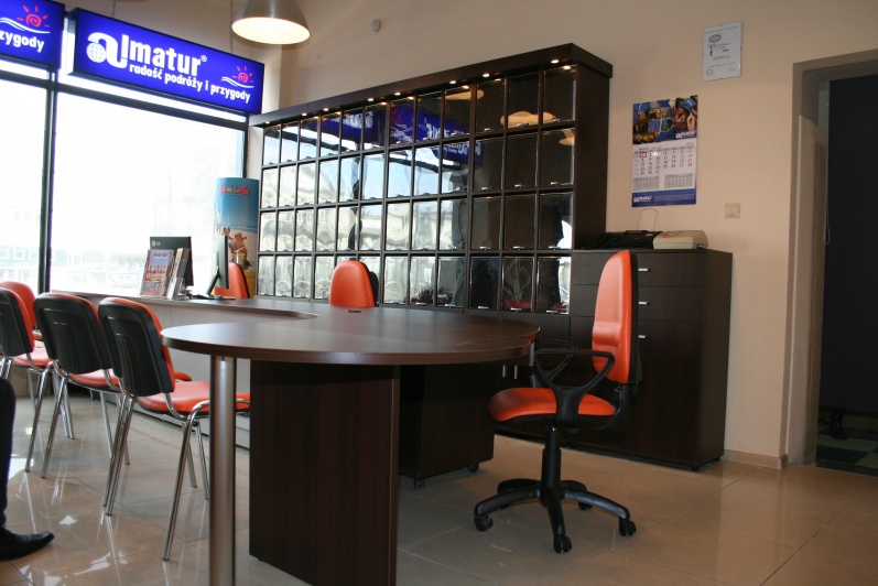 Klasyczny, funkcjonalny system lad biurowych wykonanych z płyty wiórowej laminowanej, oklejonej obrzeżem PCV dobrany do koloru płyty. Zestaw wykonany w dwóch tonacjach kolorystycznych - panele - Aluminium M 8582 oraz pozostałe elementy - Kasztan Wenge R 4121.