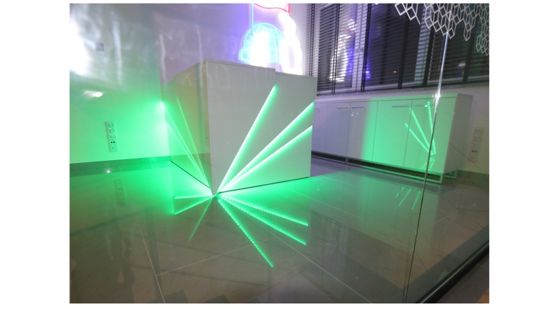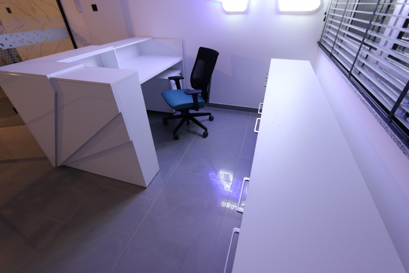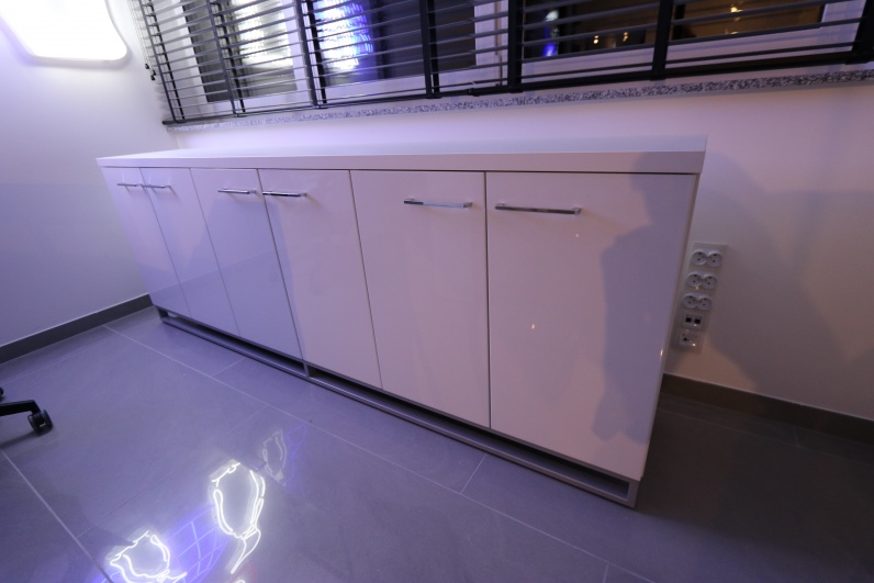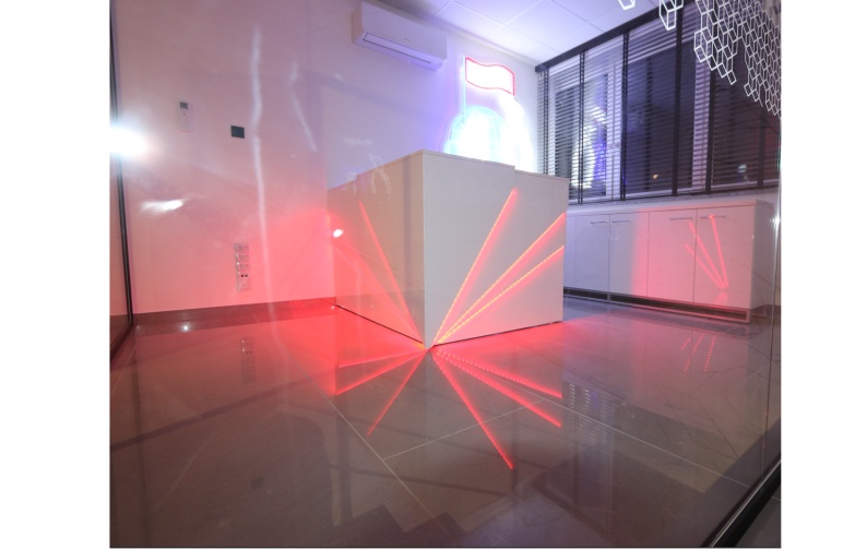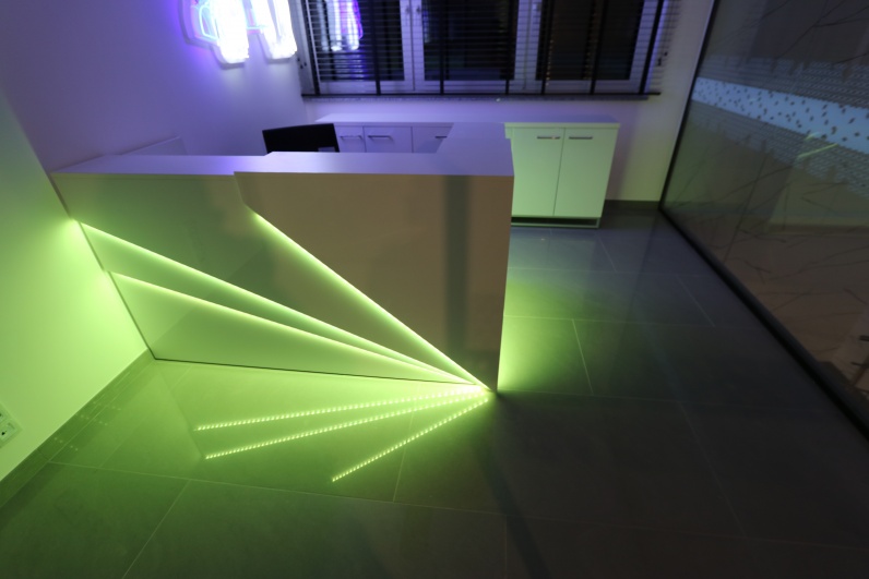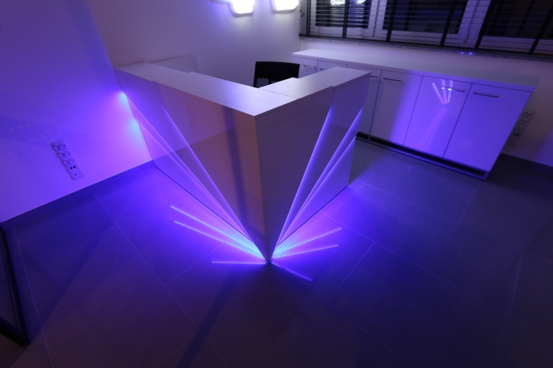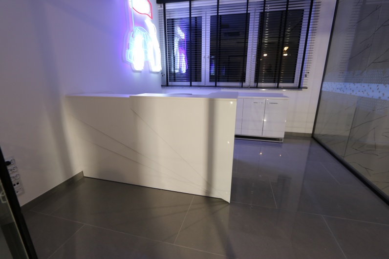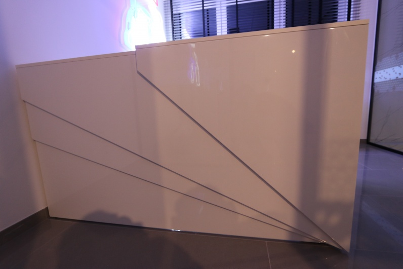 Lada recepcyjna wykonana z lakieru, podświetlona taśmą ledową RGB