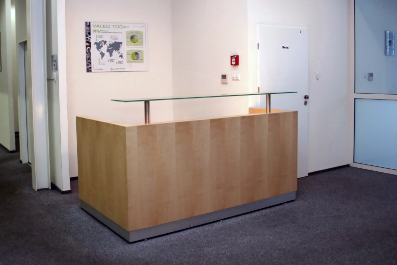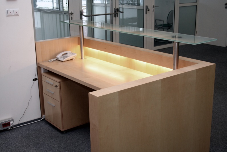 Lada wykonana ze sklejki fornirowanej okleiną klonową. Sztukateria meblowa ze stali nierdzewnej szczotkowanej. Blat nadstawki ze szkła piaskowanego, hartowanego. Cokół zabezpieczony HPL - stal nierdzewna, szczotkowana.